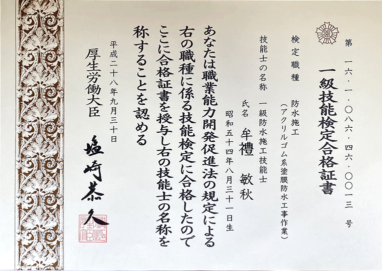 豊富な経験を持った国家資格保持スタッフが丁寧な施工をいたします。