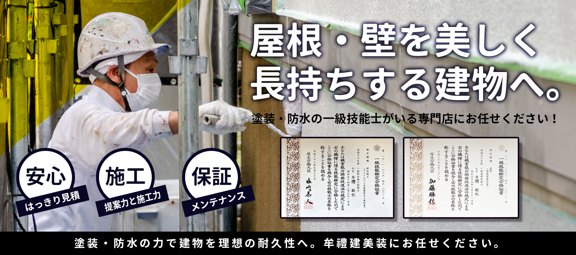 建物の外観ならお任せください!塗装・防水・屋根・板金工事なら牟禮建美装へ。